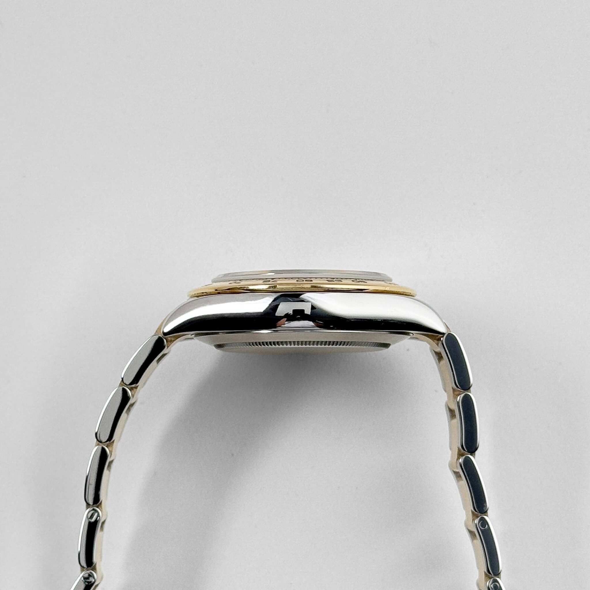 The tachymeter-engraved yellow gold bezel highlights its motorsport heritage, while the Oyster bracelet, composed of stainless steel with yellow gold center links, ensures both style and comfort. Equipped with a reliable chronograph function, the Daytona 116503 combines practical functionality with aesthetic appeal.