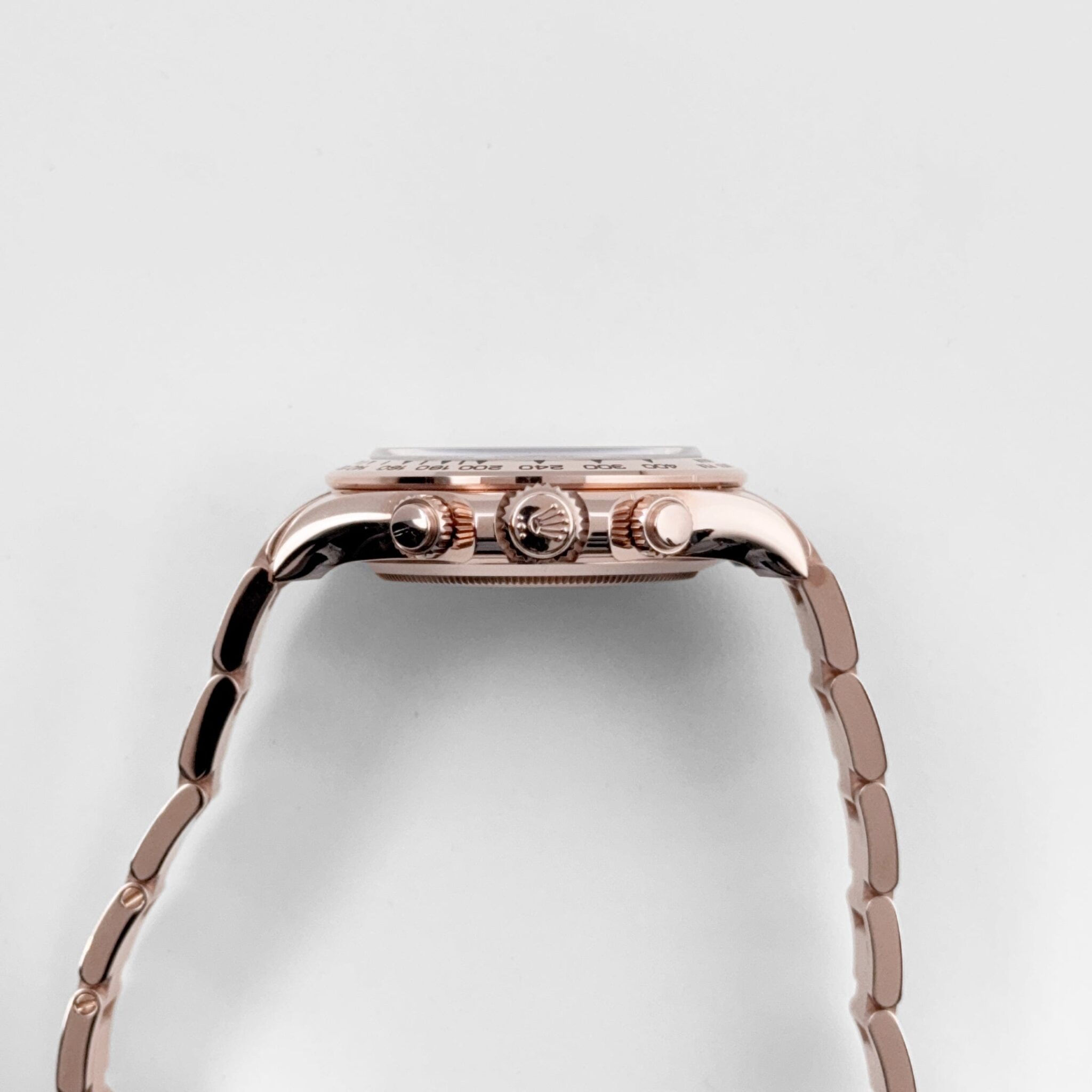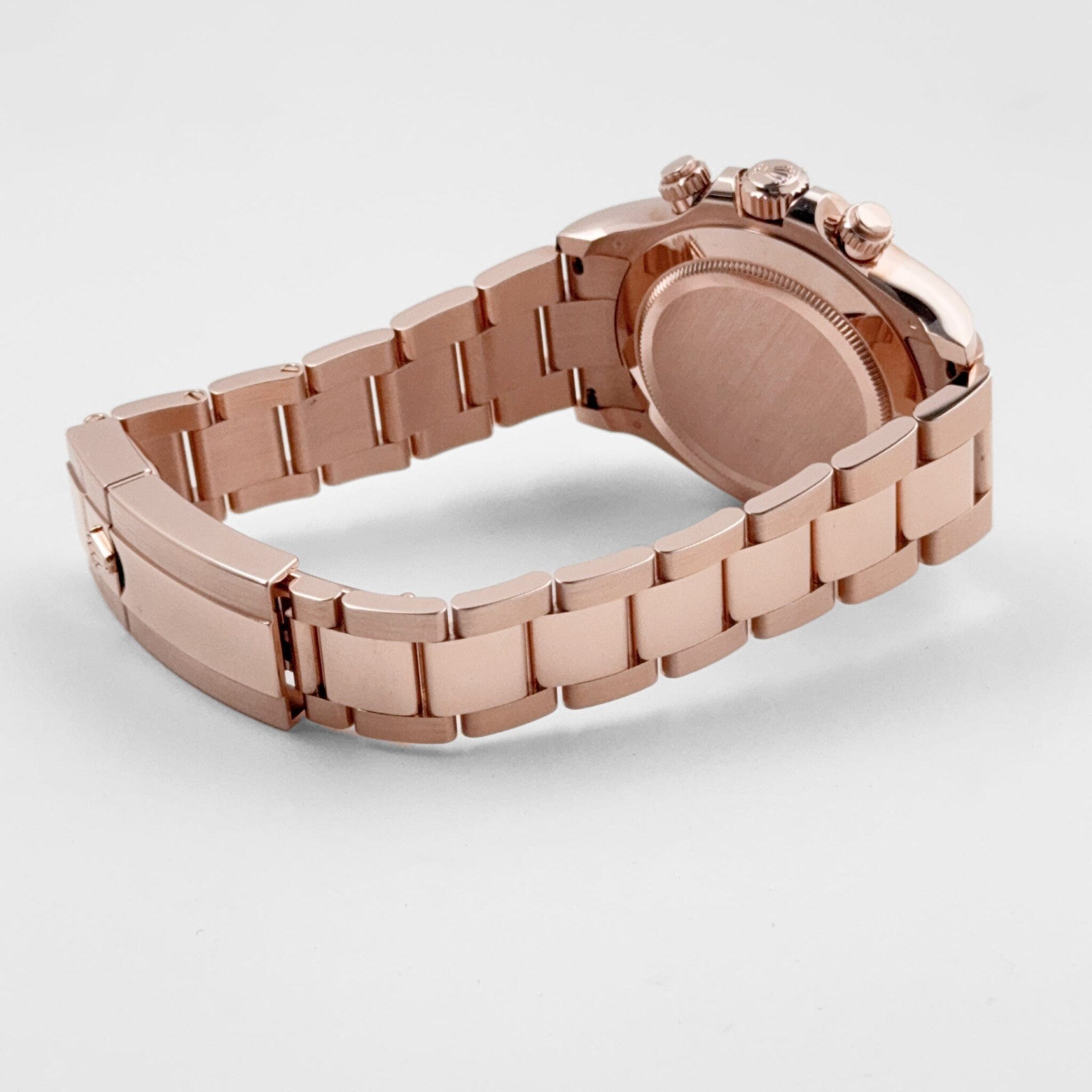 The Rolex 116505 combines cutting-edge functionality with opulent design, making it a standout chronograph for collectors. The 40mm Oyster case, crafted from 18k Everose gold, is paired with a matching tachymeter-engraved bezel, embodying both luxury and motorsport-inspired precision.