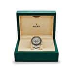 The Rolex 116506 in platinum is an exceptional chronograph that epitomizes elegance and performance. Crafted from solid 950 platinum, this 40mm timepiece features a sleek ceramic bezel with an engraved tachymeter scale, a nod to its racing-inspired heritage.