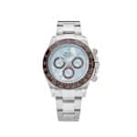 The signature ice blue dial, exclusive to Rolex platinum models, stands out with bold Arabic numerals and luminescent hands for excellent legibility. The subdials at 3, 6, and 9 o??clock provide precise chronograph functionality, seamlessly integrated into the clean design.