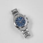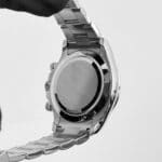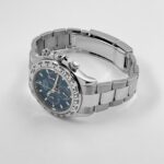 The Rolex 116509 is a striking chronograph that seamlessly blends luxury and performance. Its 40mm case, crafted from 18k white gold, exudes refinement and durability. The polished bezel features an engraved tachymeter scale, emphasizing the Daytona’s motorsport heritage.