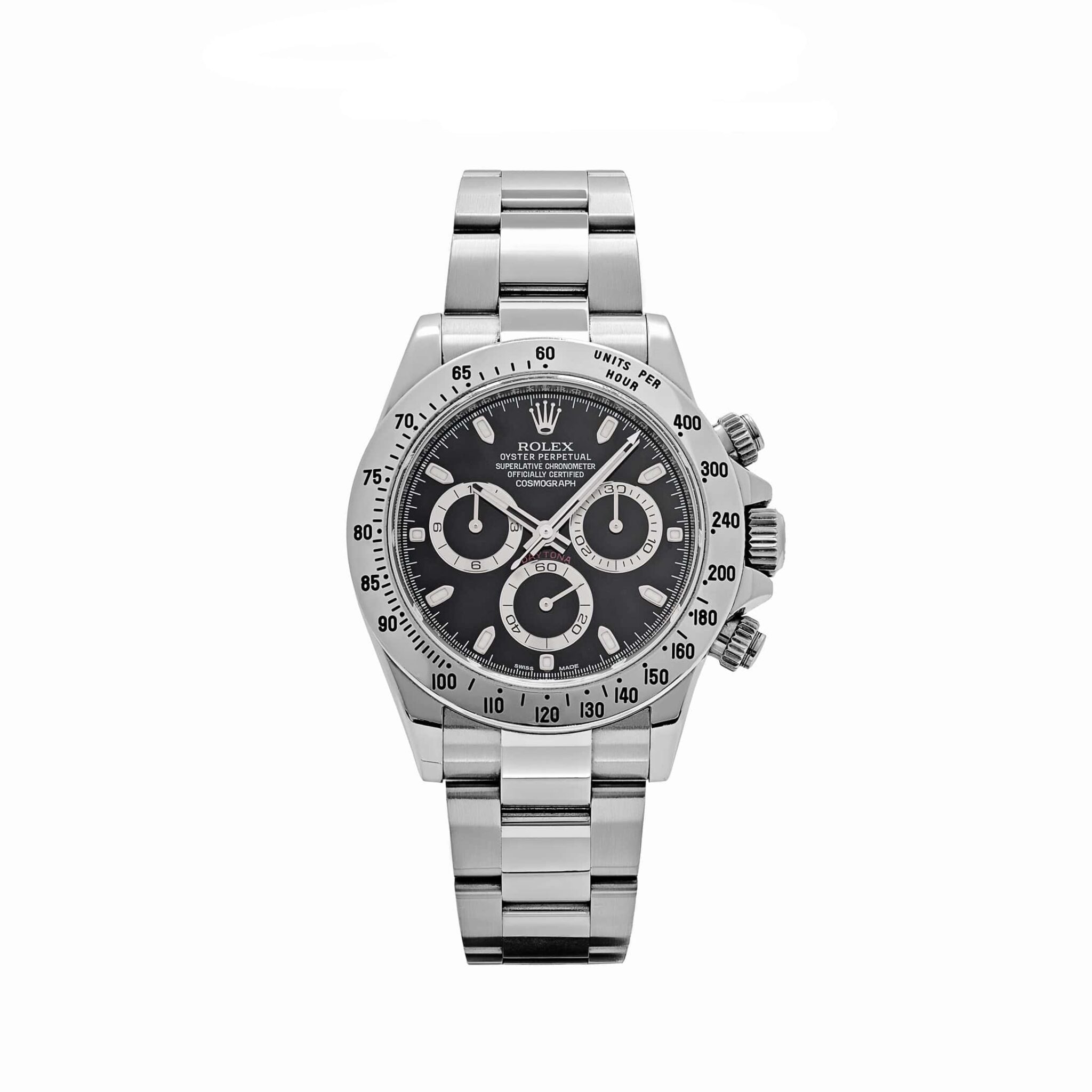 Crafted from durable stainless steel, the 116520 is designed to withstand the rigors of everyday wear while maintaining its refined look. Its 40mm case and polished Oyster bracelet ensure a comfortable fit, while the tachymeter bezel enhances its motorsport-inspired aesthetic. With its distinctive styling and impressive functionality, the Rolex Daytona 116520 remains a true symbol of luxury, performance, and craftsmanship.