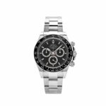 The Rolex 126500LN is designed in 40mm stainless steel with a black dial and styled on an Oyster bracelet. Luminous hour markers and hands include a Chromalight display for optimal legibility. The black bezel is engraved with a tachymetric scale and hosts the high-performance Chronograph. Complications include a 30-minute counter, a 12-hour counter, and stop seconds for setting the exact time.