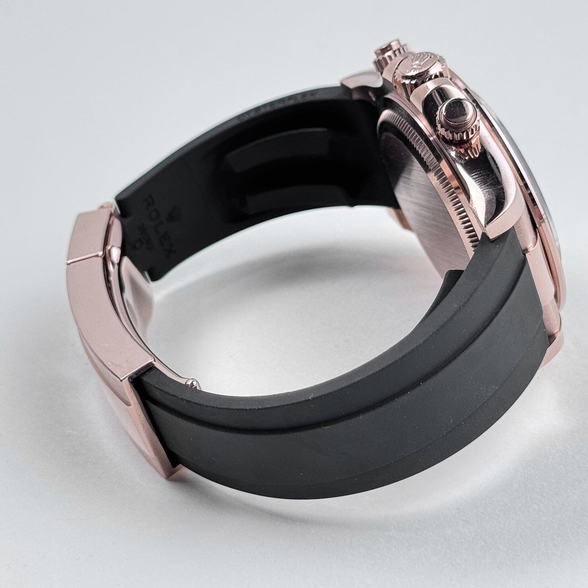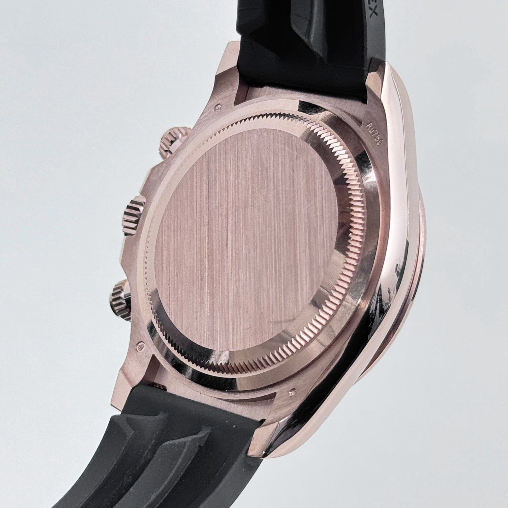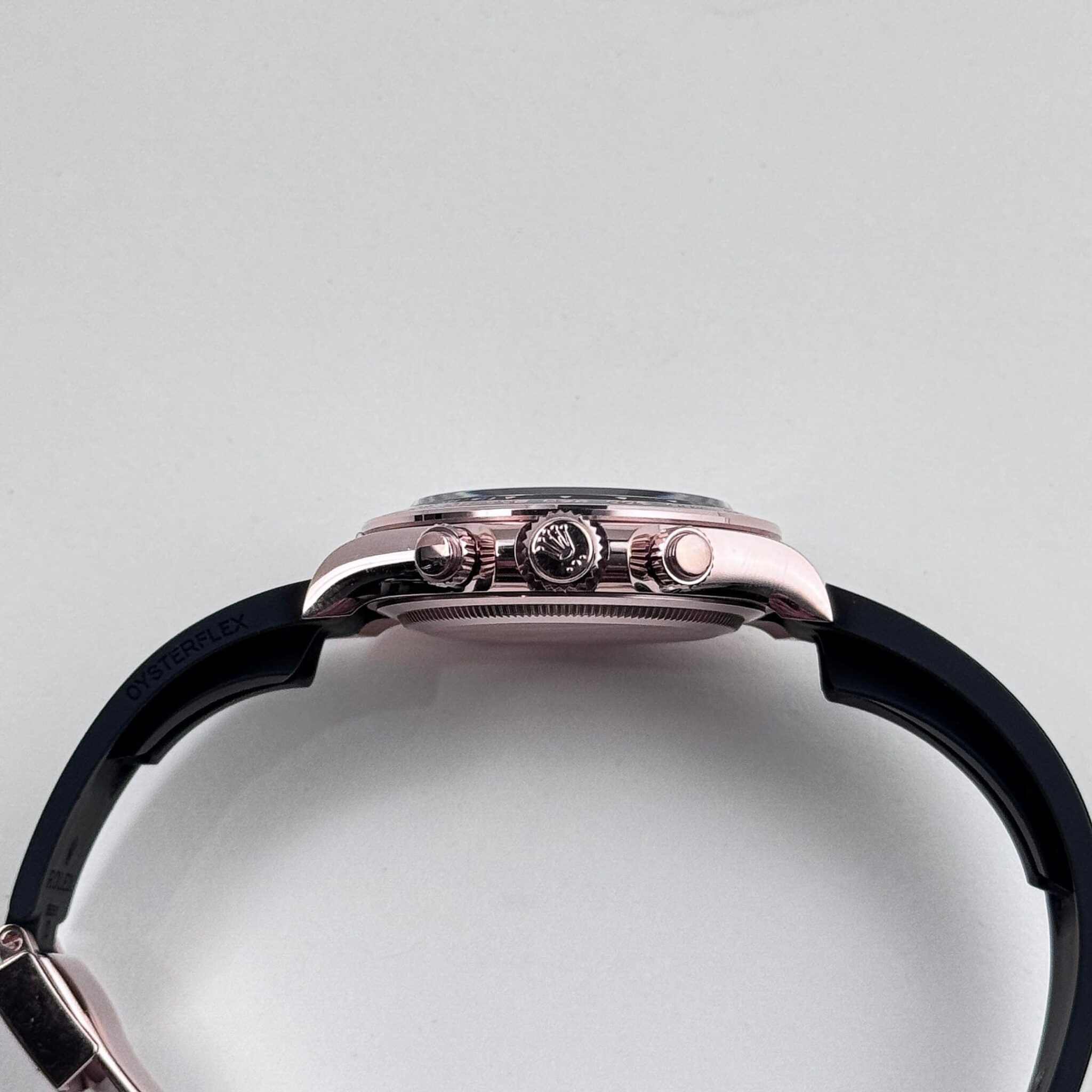 Powered by the in-house Caliber 4131, the 126515LN delivers precise timekeeping, a robust 72-hour power reserve, and the reliability for which Rolex is known. The Oysterflex bracelet, combining a metal blade with a rubber coating, ensures both durability and exceptional comfort on the wrist. With its bold design, high-performance movement, and distinctive Everose gold construction, the Daytona 126515LN is a perfect blend of style, precision, and practicality.