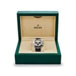 Powered by the upgraded Caliber 4131, the watch offers a flyback chronograph function, 72-hour power reserve, and Superlative Chronometer precision. Understated yet highly refined, the 126519LN ‘Ghost’ is a stealth-luxury Daytona built for collectors who favor clean, monochromatic style.