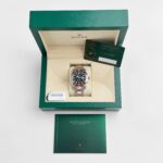 The black dial is complemented by luminous hour markers and hands, ensuring legibility in any condition. The standout feature is the two-tone Cerachrom bezel in black and brown, a nod to the vintage “Root Beer” GMT-Master models. This bezel allows for easy tracking of a second time zone, while the iconic GMT hand and 24-hour display underscore its travel-focused functionality. The 126711CHNR is a favorite among collectors, blending classic heritage with modern innovation in a timeless design.