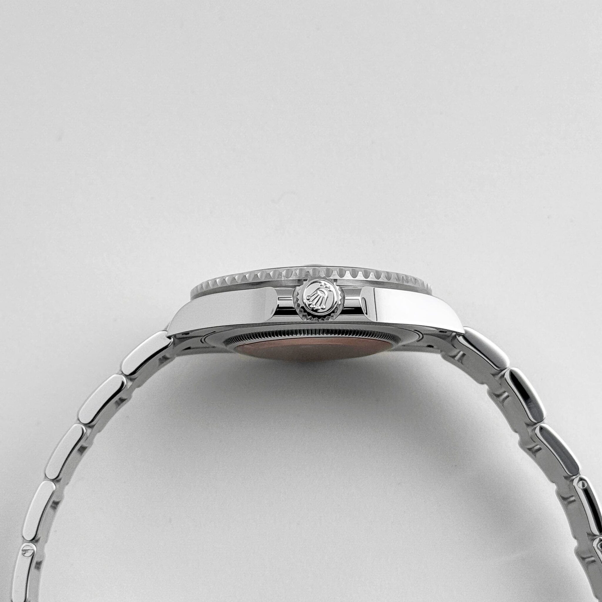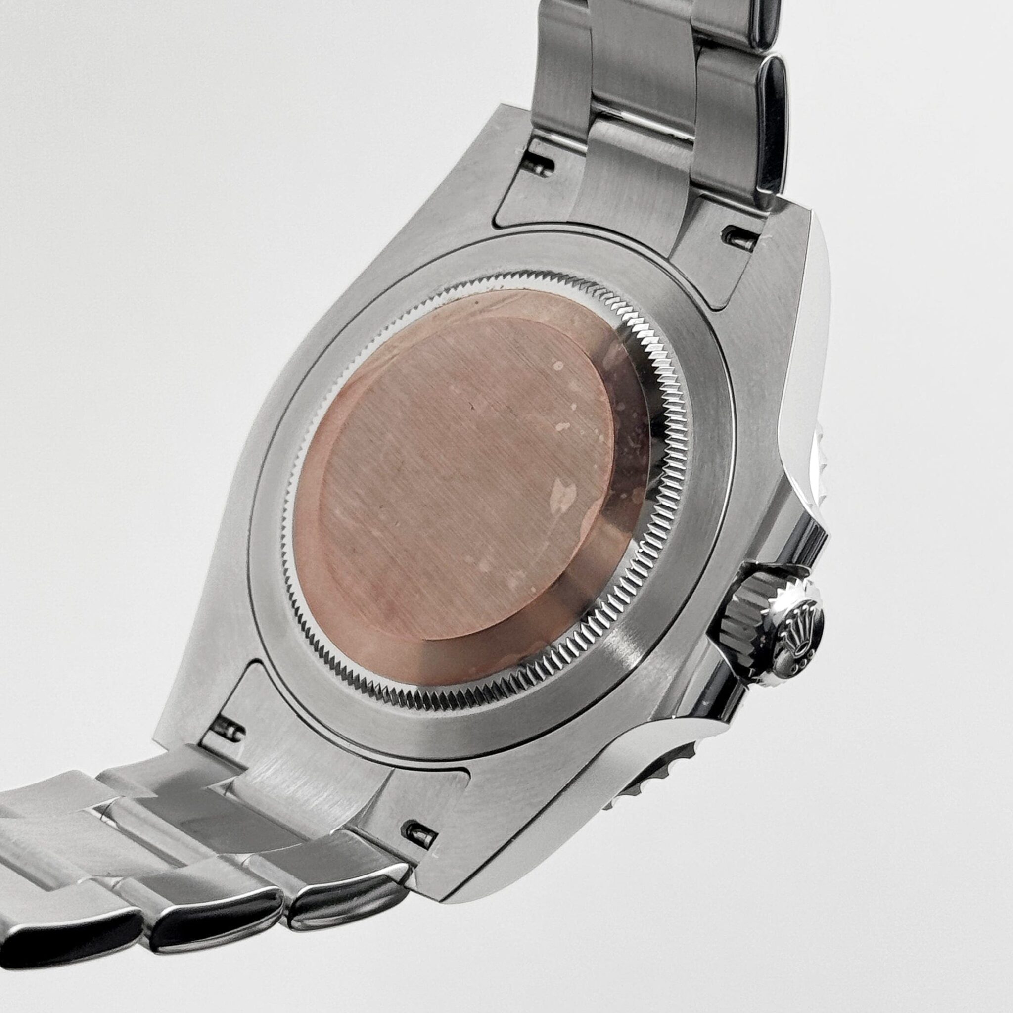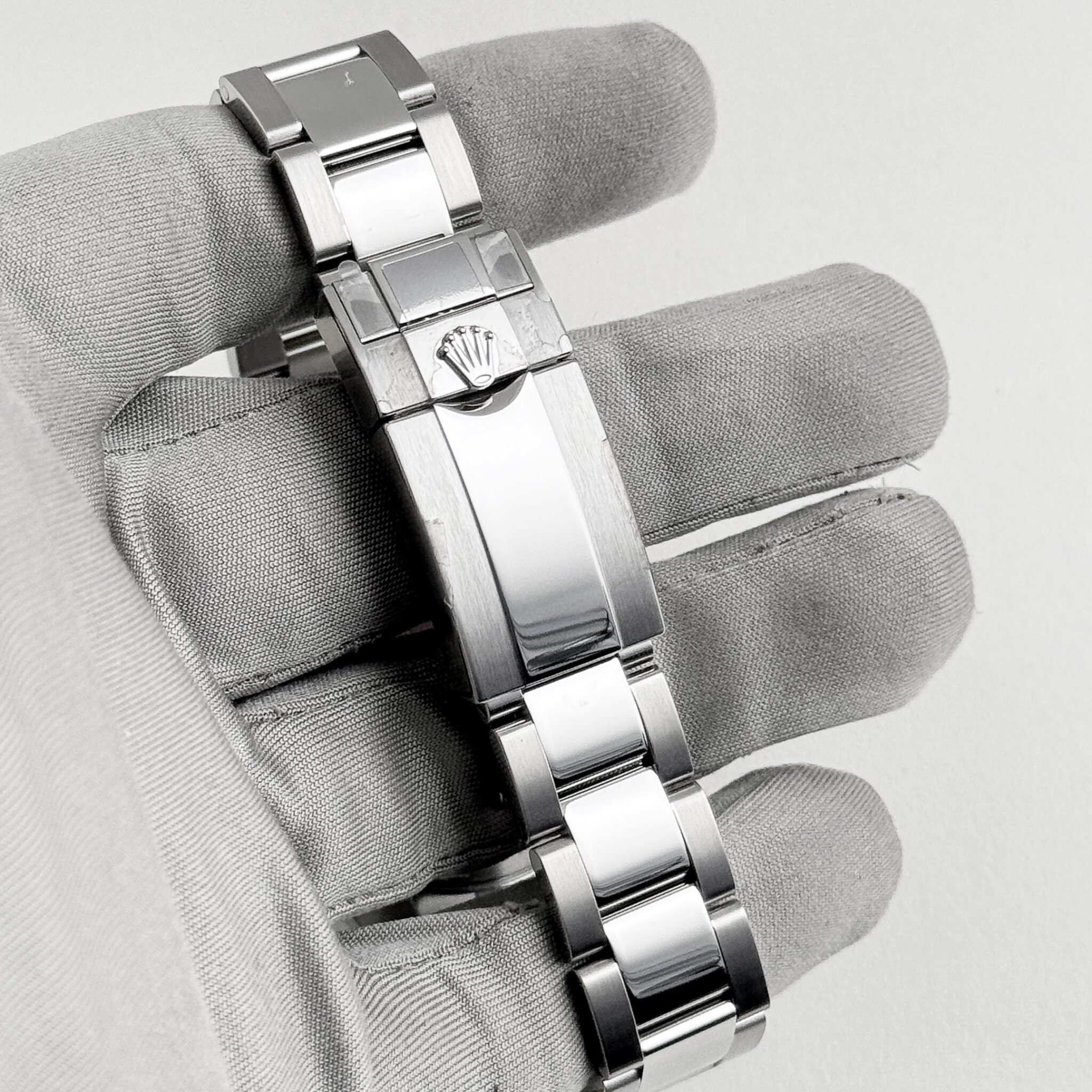 The? 126720VTNR, known as the ???? or ??Lefty,?? stands out with its left-hand crown configuration, catering to left-handed wearers or those who appreciate a unique twist on the classic GMT design. Crafted in stainless steel, its 40mm Oyster case and matching Oyster bracelet combine robust construction with timeless style. The green and black Cerachrom bezel, paired with the black dial, creates a bold yet sophisticated aesthetic, while the dual time zone functionality makes it an ideal choice for travelers.