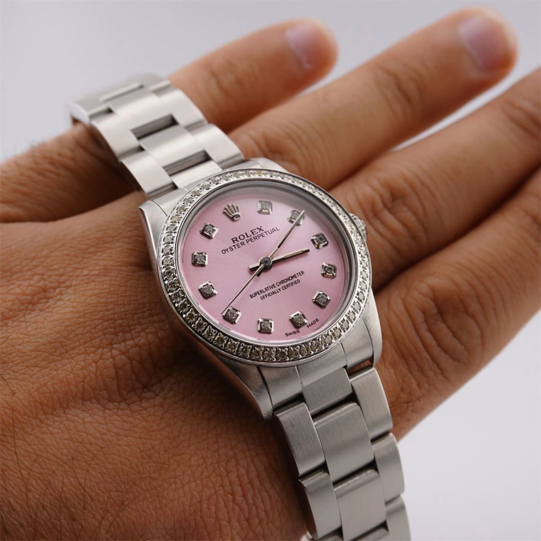 Rolex Oyster Perpetual 31mm 1.50ct Diamonds Pink Dial Steel Automatic Watch