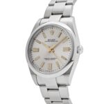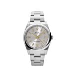 The silver sunburst dial offers a minimalist and refined look, with Chromalight-filled baton hour markers and hands ensuring optimal legibility in any lighting. The absence of a date window maintains the dial??s symmetry, staying true to the Oyster Perpetual??s pure design philosophy.
