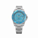 The 40mm Oyster case and original Rolex automatic movement remain unchanged, ensuring the watch maintains its legendary reliability and precision. As a customized piece, this Submariner Date 116610LN with its blue enhancements offers a unique opportunity for collectors or enthusiasts who appreciate the blend of iconic Rolex craftsmanship and personalized style.