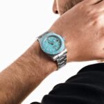 The Rolex Date 116610LN is a renowned dive watch reimagined here with a distinctive aftermarket aesthetic. Originally crafted in stainless steel with a black ceramic bezel and black dial, this model has been customized to feature a bold blue dial and a matching blue bezel insert. These aftermarket modifications provide a fresh, unconventional take on the classic Submariner design, setting it apart from the traditional look while still retaining its robust construction and professional-grade performance.