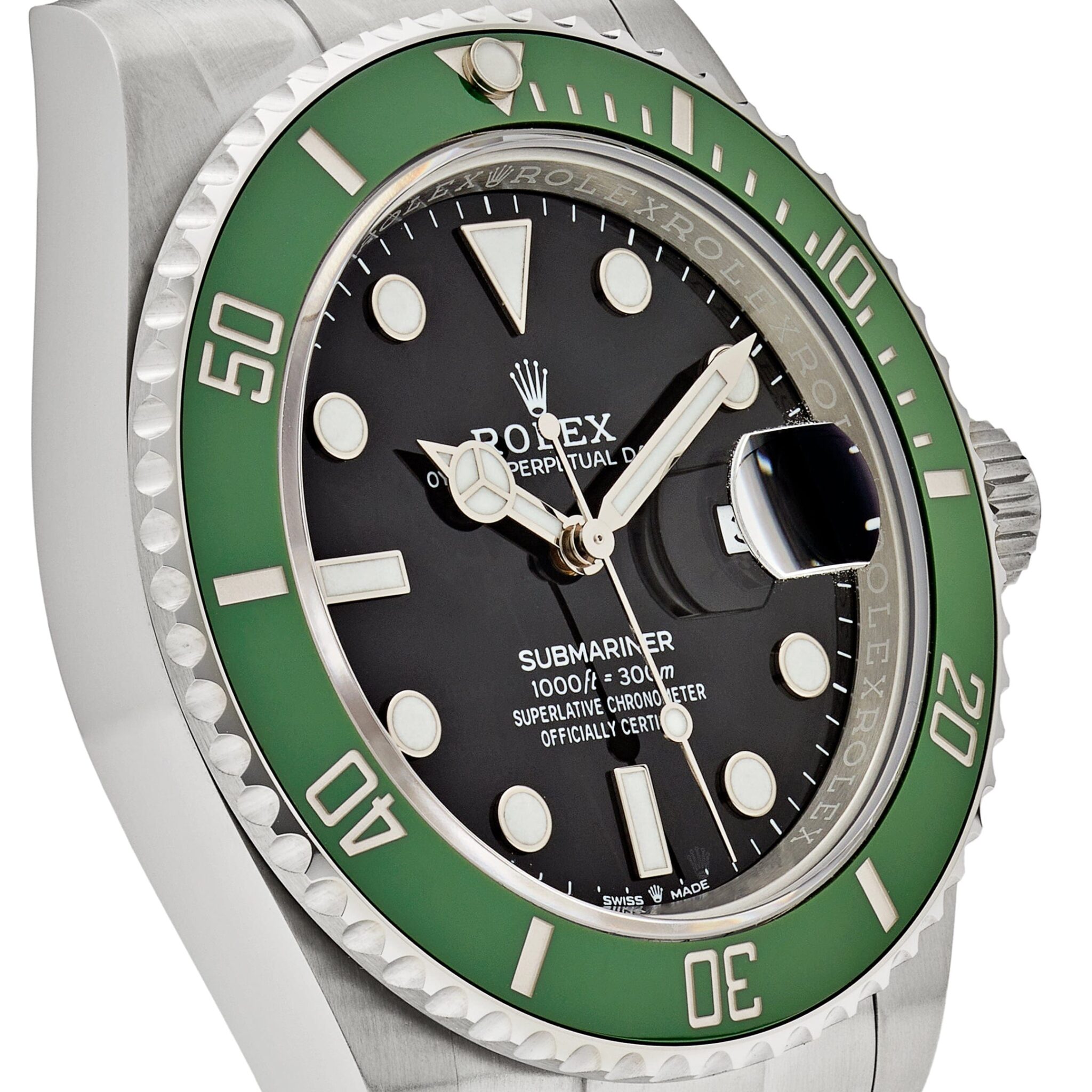 This Rolex Date 126610LV ??Starbucks MK2?? is the evolution of the famed green-bezel Submariner lineage, housed in a robust 41mm stainless steel case with the classic Oyster bracelet. Nicknamed ??Starbucks?? for its combination of a green Cerachrom bezel and black dial, this MK2 variant features subtle refinements in the bezel color and insert finishing, differentiating it from the earlier MK1.