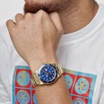 The Rolex Date 16618LB is a striking fusion of luxury and performance, tailored for both professional divers and collectors. Its 40mm 18k yellow gold case exudes elegance while offering durability, complemented by a matching blue aluminum bezel and blue sunburst dial, paying tribute to the Submariner’s nautical heritage.