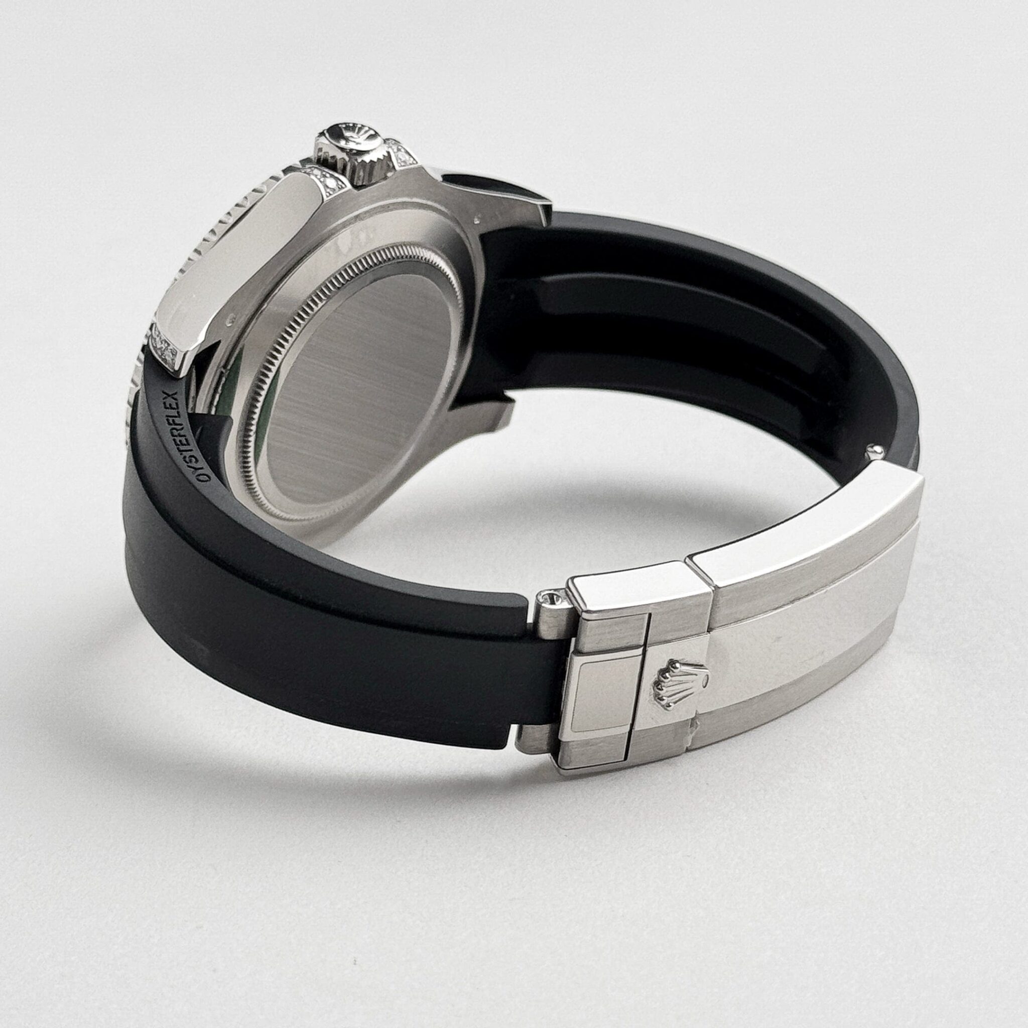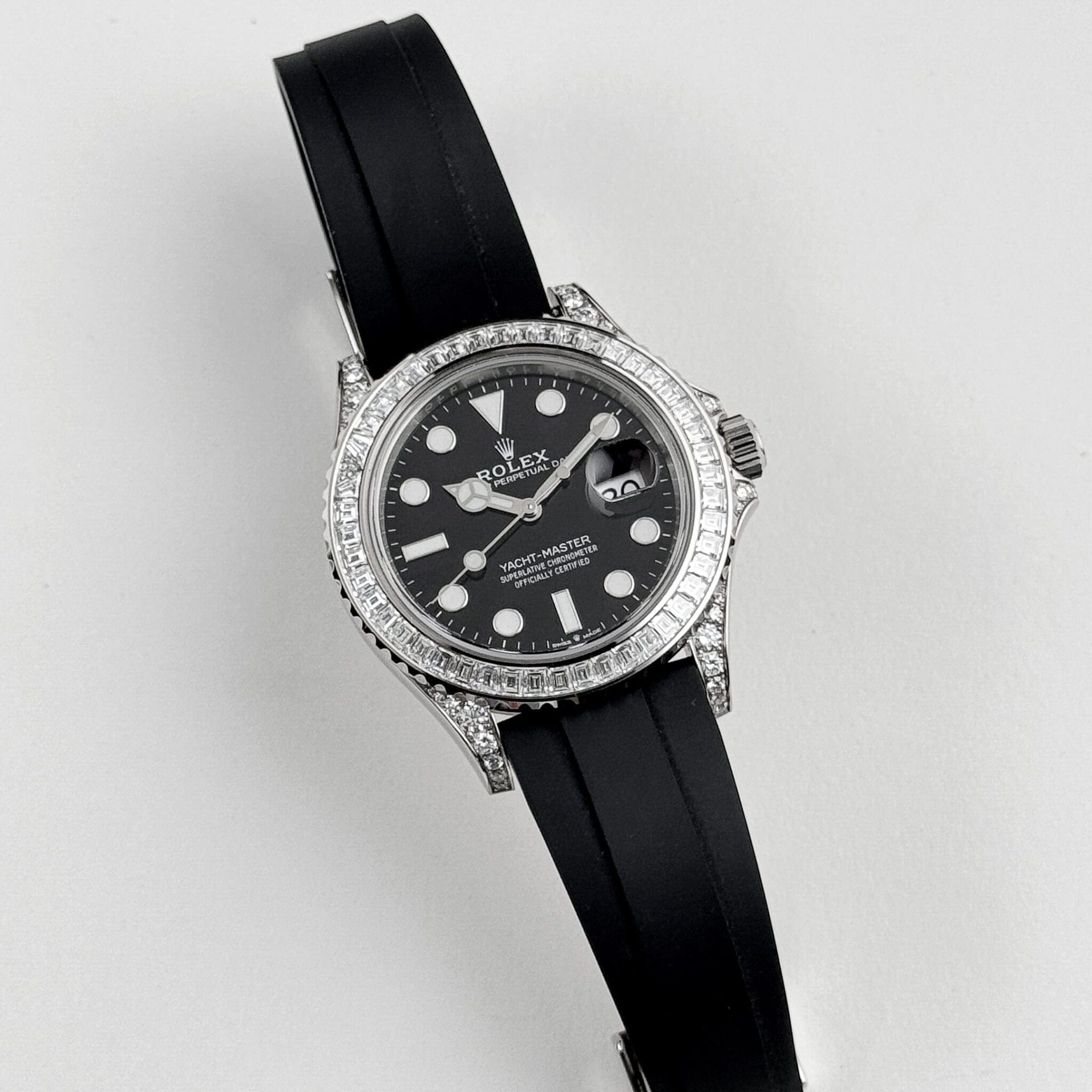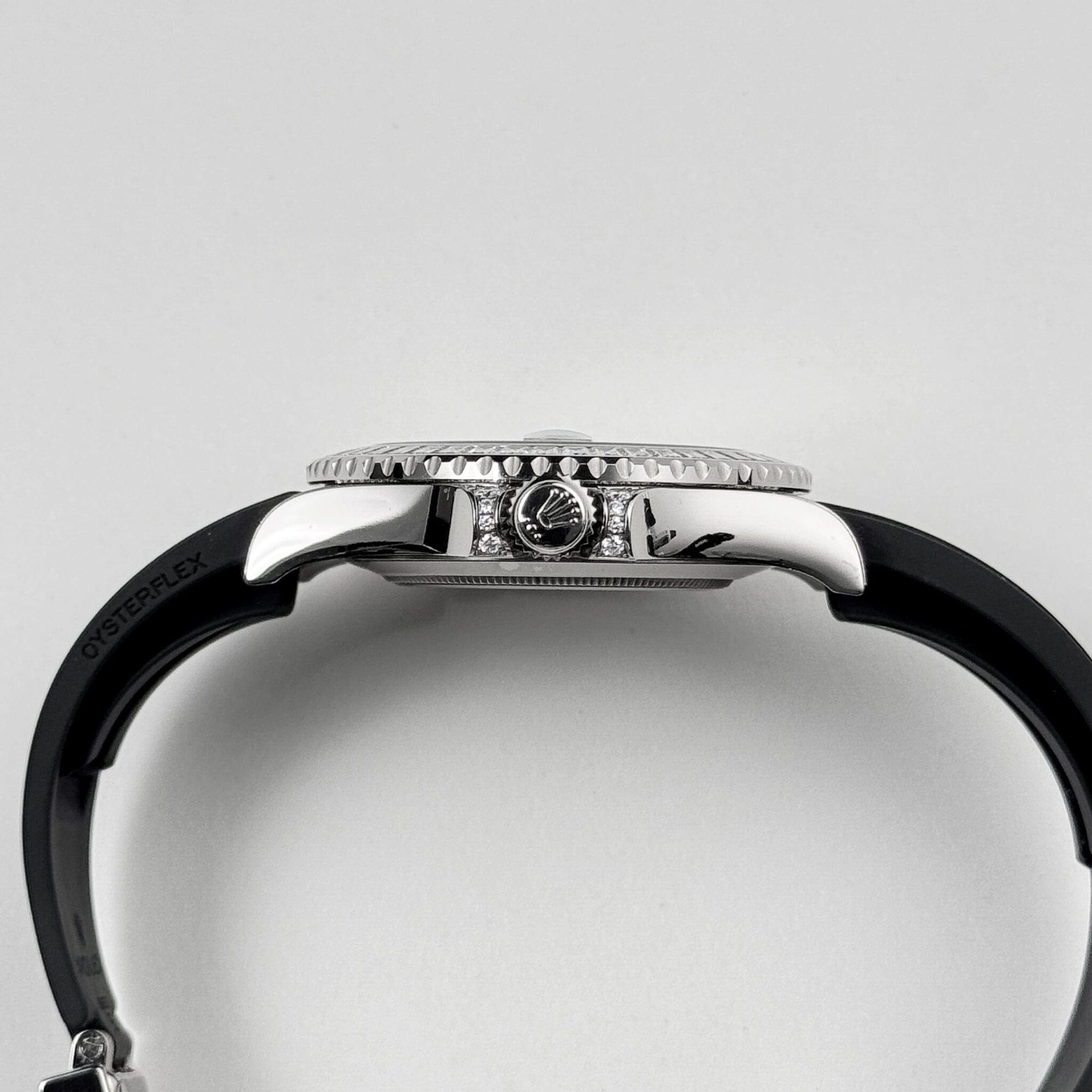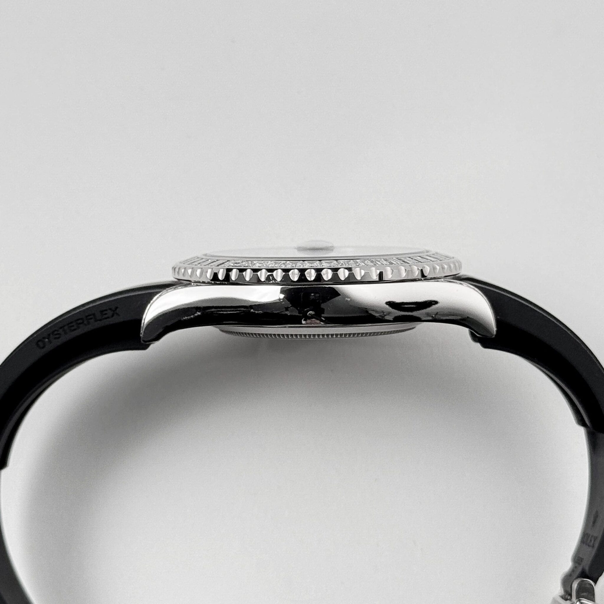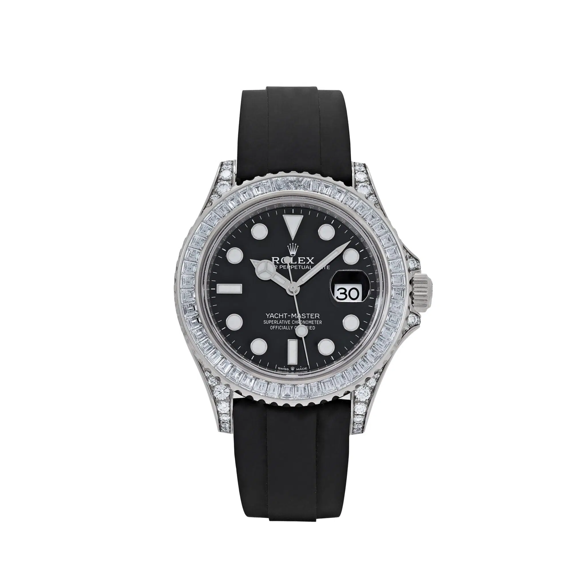 The Rolex 226679TBR is a dazzling statement of luxury and functionality, crafted in 18k white gold for a sophisticated and robust design. Its 42mm case is elevated by a stunning diamond-set bezel and lugs, featuring meticulously placed brilliant-cut stones that add brilliance to its nautical-inspired aesthetic.