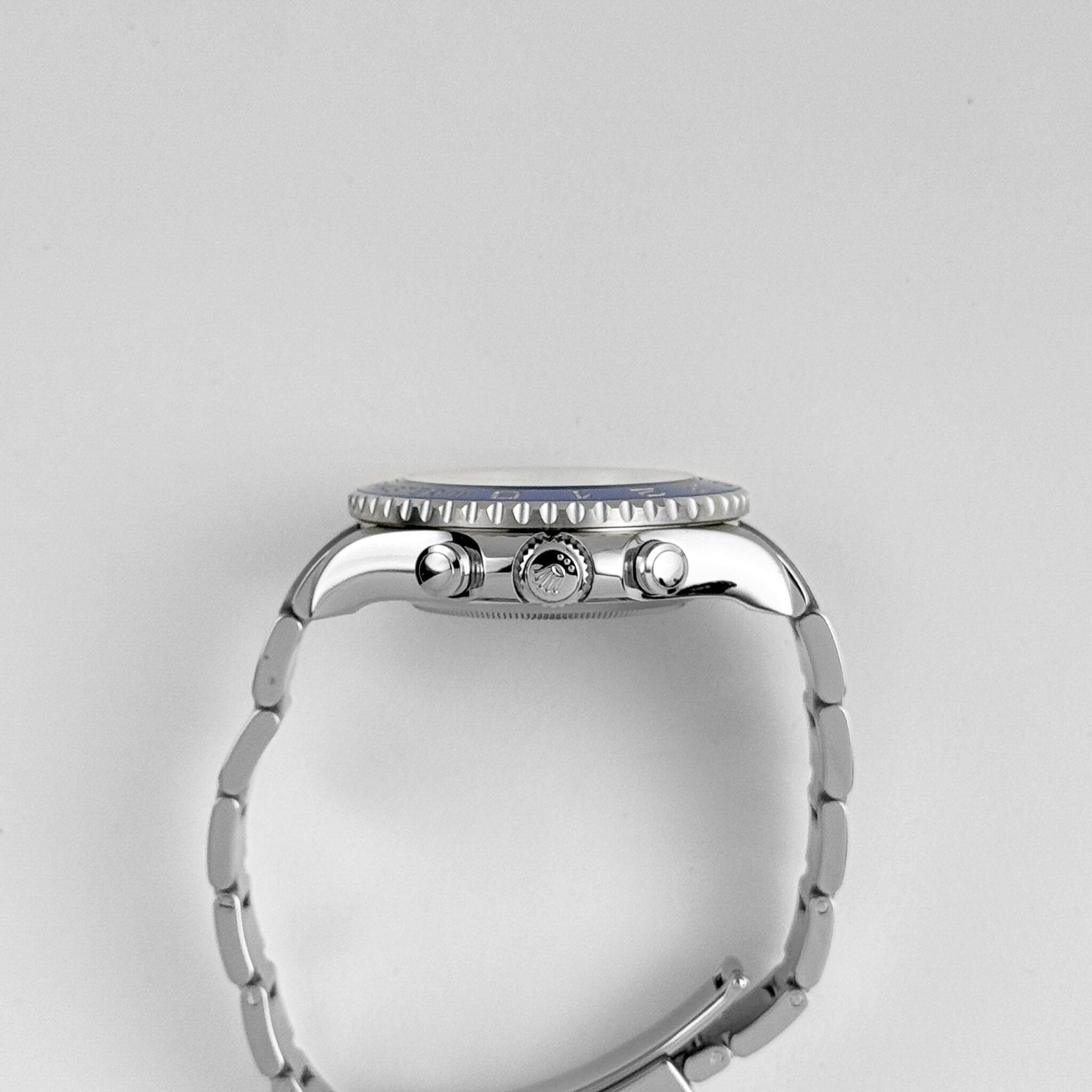 The Rolex is a bold and functional timepiece designed for professional sailors and enthusiasts alike. Crafted in a 44mm stainless steel case, it features a bidirectional 90-degree rotatable blue and steel bezel with a Regatta countdown timer, a hallmark of its nautical prowess.