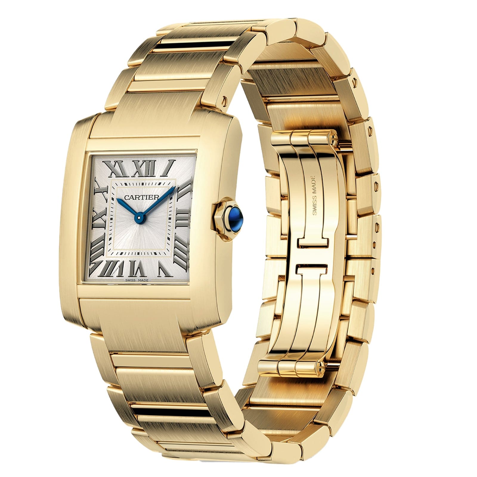 Tank Fran?aise – legendary heritage Tank collection lineage dating back to 1917 Striking golden sunray dial with Roman numeral markers and blued steel hands Presented in a 32mm yellow gold case with a faceted crown Secured with a yellow gold bracelet LEGENDARY STATUS The first Tank watch was expertly crafted by Cartier in 1917 as a gift to General Pershing of the American army during World War 1. Since then, the Tank collection has gone on to become a legendary symbol of timekeeping mastery – with bold, distinctive shapes, luxurious materials and unparalleled style. The Tank Fran?aise member of the Tank collection was launched in 1996, debuting a metal bracelet that works in perfect harmony with the case. This new, monobloc metal design, energises the ultra- profiled lines of the watch in both its aesthetic and ergonomic approach. GOLDEN RADIANCE Displayed on a robust yet sophisticated yellow gold bracelet, the 32mm yellow gold case features a faceted crown decorated with a synthetic cabochon-shaped spinel for an elegant look. The stunning golden sunray dial displays Roman numeral hour markers, with the collection’s iconic blued-steel sword- shaped hands for a bold finish. Prioritising both aesthetics and functionality, this model is powered by a high performance quartz movement for impeccable reliability and offers water resistance to 3 bar (30 metres).