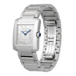 Tank Fran?aise – legendary heritage Tank collection lineage dating back to 1917 Clean silver dial with Roman numeral markers Presented in a 32mm steel case with a faceted crown Matching steel bracelet LEGENDARY STATUS The first Tank watch was expertly crafted by Cartier in 1917 as a gift to General Pershing of the American army during World War 1. Since then, the Tank collection has gone on to become a legendary symbol of timekeeping mastery – with bold, distinctive shapes, luxurious materials and unparalleled style. The Tank Fran?aise member of the Tank collection was launched in 1996, debuting a metal bracelet that works in perfect harmony with the case. This new, monobloc metal design, energises the ultra-profiled lines of the watch in both its aesthetic and ergonomic approach. A BOLD SYMBOL OF LUXURY Displayed on a robust steel bracelet, the 32mm steel case features a faceted crown decorated with a synthetic cabochon-shaped spinel for an elegant yet hardened look. The stunning crisp silver dial displays Roman numeral hour markers, with blued-steel sword-shaped hands for a bold finish. This model is powered by a high performance quartz movement for impeccable reliability.